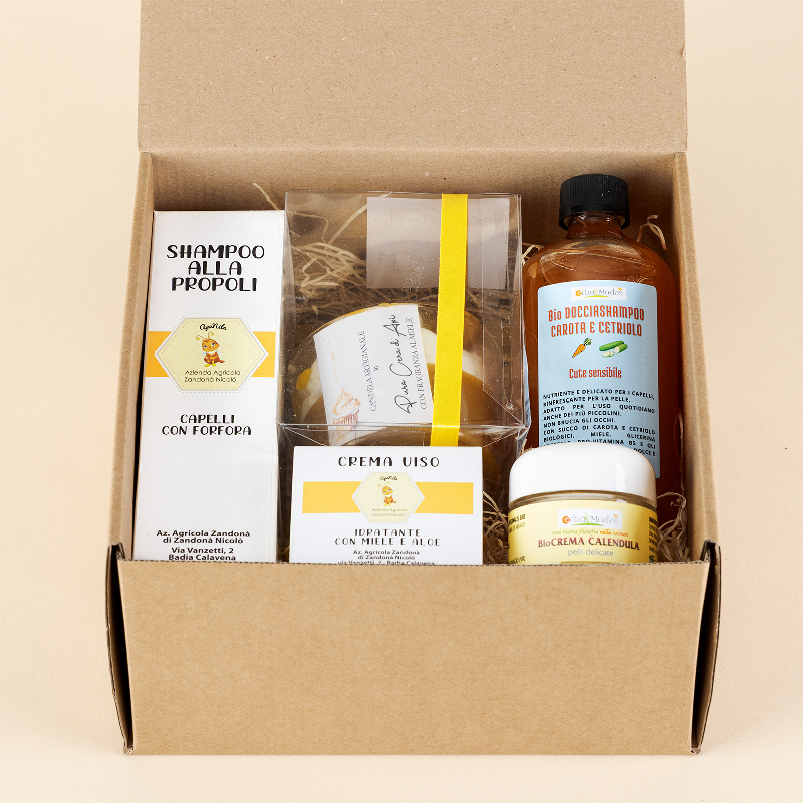 Docciashampoo, shampoo alla propoli, candela in cera d’api e creme per viso e corpo accompagnano un momento da vivere a casa, quando senti il bisogno di prenderti cura di te stesso, respirare e rallentare.