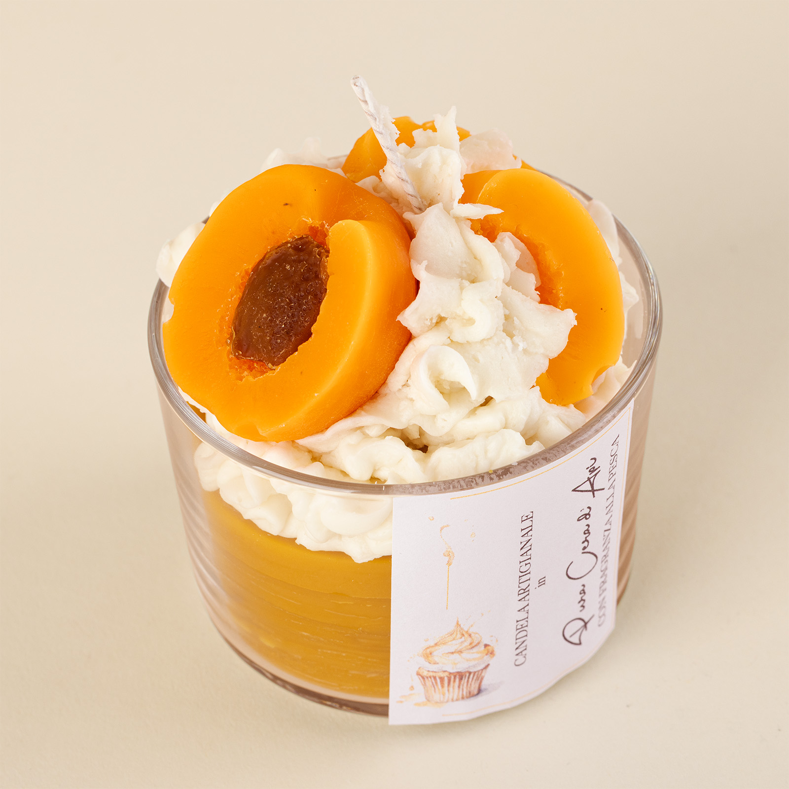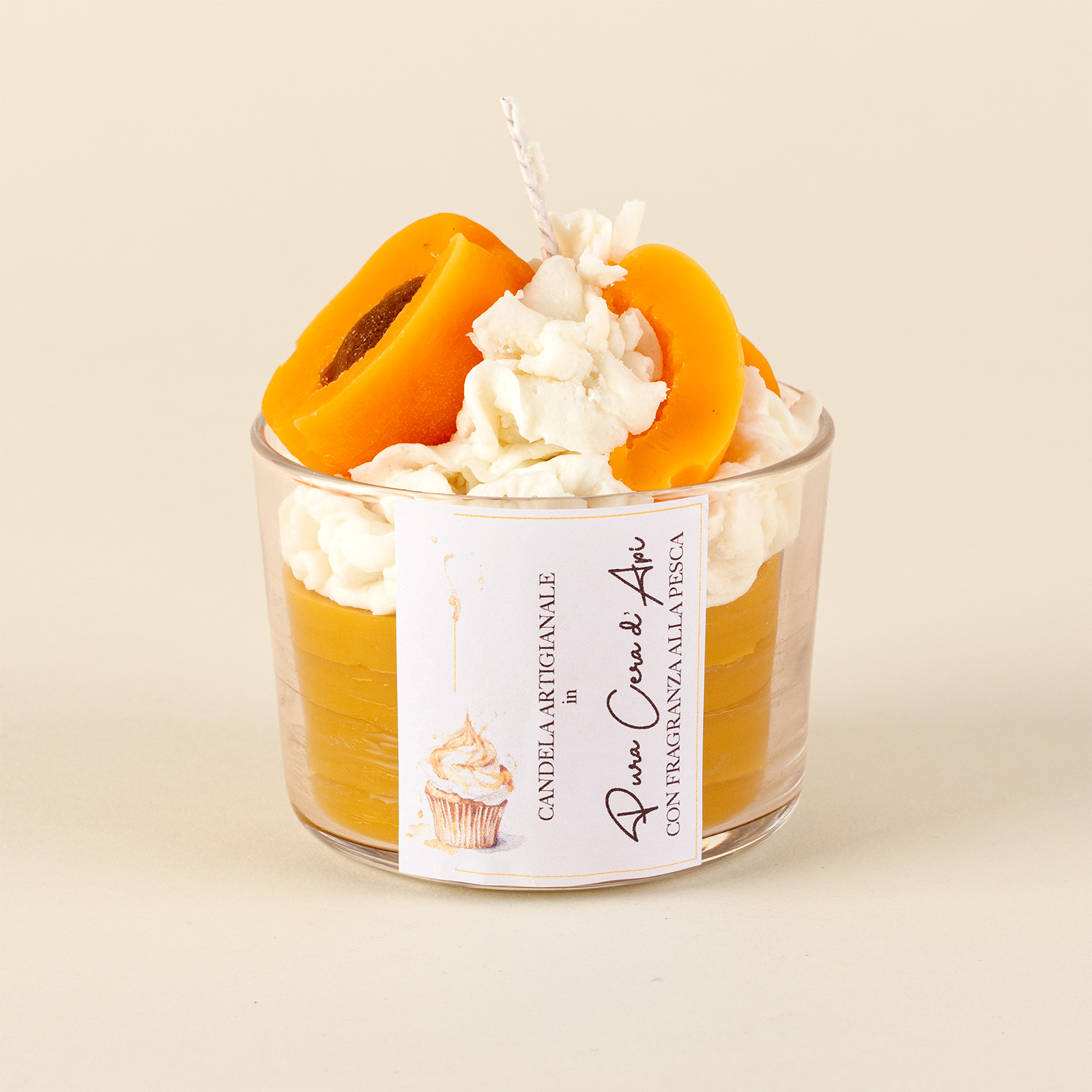 Candela in pura cera d’api con fragranza all’Albicocca.