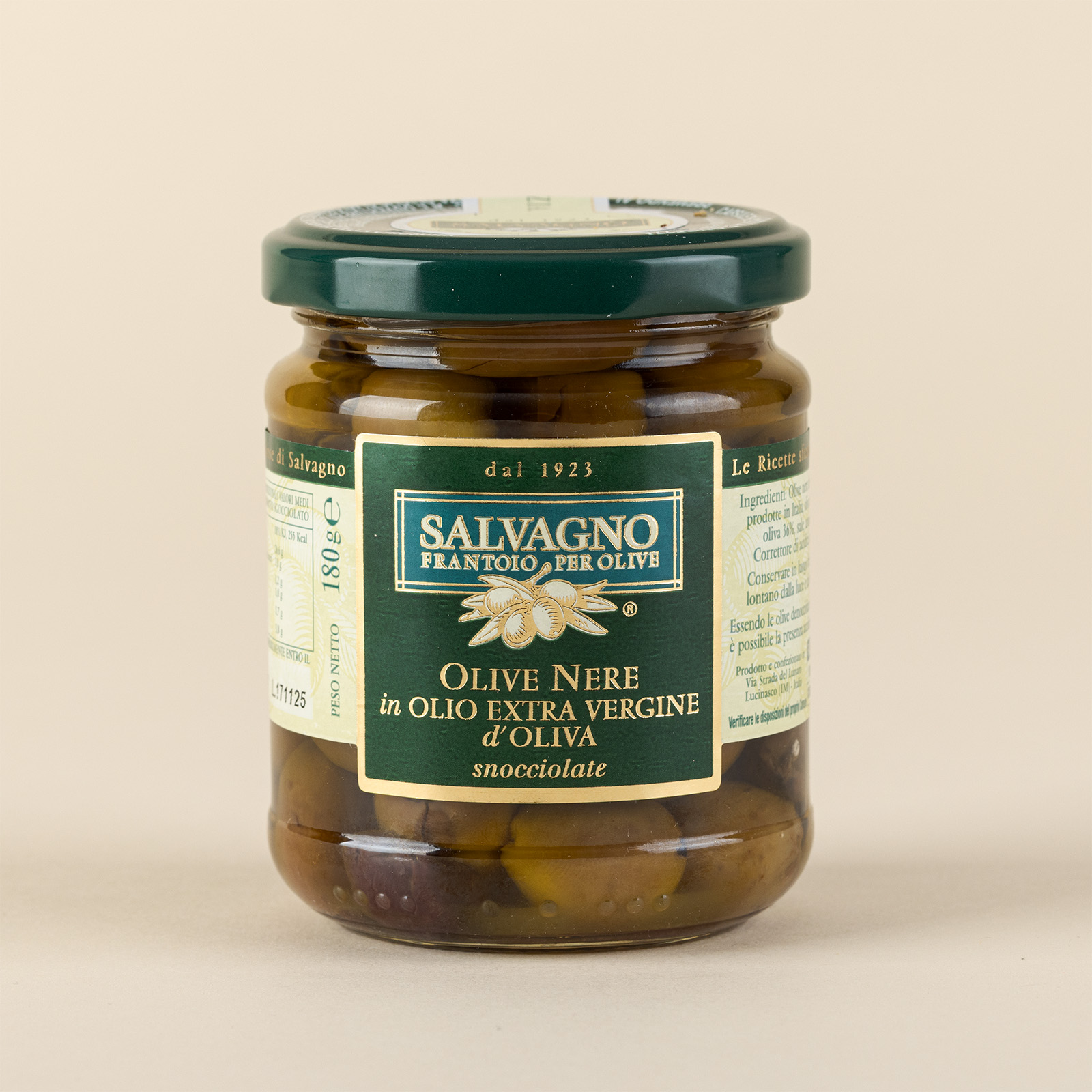 Ingredienti: olive nere denocciolate 61%, olio extra vergine di oliva 36%, sale, aromi naturali, correttore di acidità acido citrico.